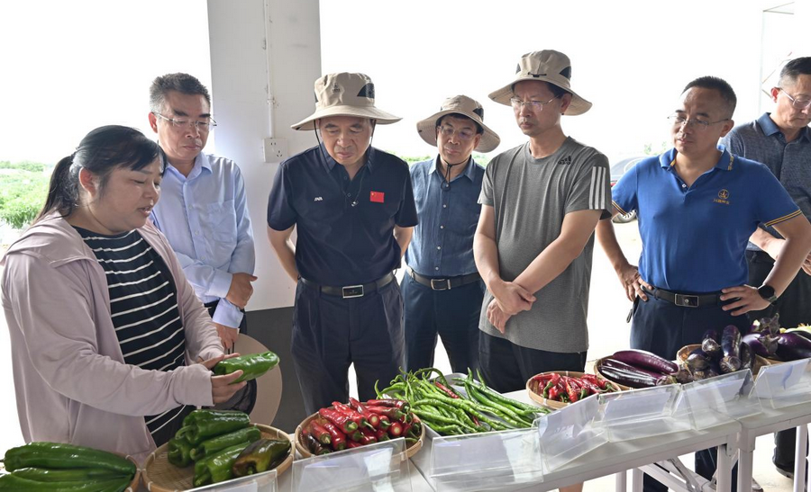 鄒學(xué)校一行人深入興蔬種業(yè)基地田間地頭,仔細(xì)查看辣椒、茄子、黃瓜等蔬菜新品種的生長態(tài)勢,詳細(xì)了解興蔬種業(yè)在品種選育、栽培技術(shù)、推廣應(yīng)用等方面的工作成果與實踐情況。湖南蔬菜研究所的科研團隊就博辣天驕1號、脆甜16號、紅秀3號等高品質(zhì)成果作了詳細(xì)匯報。