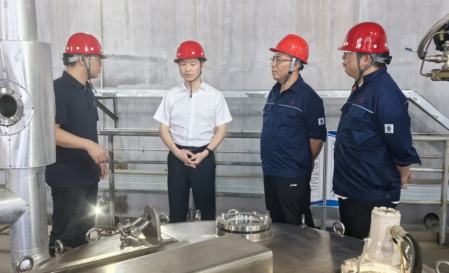 調(diào)研期間,董巍一行直奔銀海公司生產(chǎn)一線,深入了解生產(chǎn)運營全流程,為一線工作精準(zhǔn)“把脈問診”。在生產(chǎn)車間,他細(xì)致核查設(shè)備運行狀態(tài)、工藝流程銜接細(xì)節(jié)及現(xiàn)場作業(yè)規(guī)范執(zhí)行情況,與現(xiàn)場操作人員深入交流,重點詢問生產(chǎn)效率提升舉措、設(shè)備日常維護機制及安全管理落實細(xì)節(jié),全面掌握一線生產(chǎn)實況。