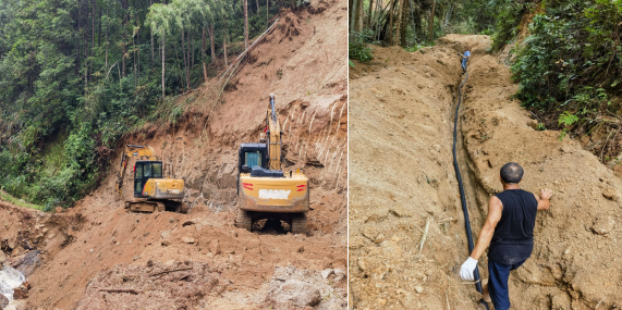 8月12日,海利集團撥付10萬元援建費用幫助桎木村迅速推進重建工作,工作隊積極組織并配合桎木村開展了通往廖家、倉庫背、段家(村部)等三組災(zāi)毀人飲管線及青草堂通組道路的恢復(fù)性建設(shè)施工,通組道路打通約3500米,敷設(shè)50#主水管1000多米;8月13至14日,完成了通往黎家組河道水毀臨時涵管橋加管加固工作,行人和小型車輛均能安全通過,且經(jīng)過較大雨水考驗沒有再次損毀;通過積極協(xié)調(diào)電力部門,全村于8月14日已恢復(fù)正常供電。工作隊和村委村民齊心協(xié)力,保障桎木村群眾盡快恢復(fù)正常生活。